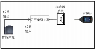 對場景2,預先錄制公告的擴聲系統(tǒng)如圖4所示。如果擴聲系統(tǒng)不含系統(tǒng)傳聲器而是直接通過播放器播放音頻,則需要通過外部信號發(fā)生器(智能聲源線路輸出)將STIPA信號輸入至系統(tǒng)中,通過調(diào)節(jié)擴音系統(tǒng)持續(xù)播放大小可調(diào)的STIPA測試信號。測量時,擴聲系統(tǒng)處于最高可用增益工作狀態(tài),測試信號通過擴聲調(diào)音臺線路輸入擴聲系統(tǒng),擴聲系統(tǒng)處于穩(wěn)定工作狀態(tài)。