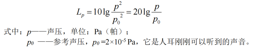 其實I為聲強;I0為參考聲強,一般取I0=10-12 W/m2,這是相應(yīng)參考聲壓級P0=2×10-5 Pa 時的聲強。一般情況下可以認(rèn)為聲壓級等于聲強級。